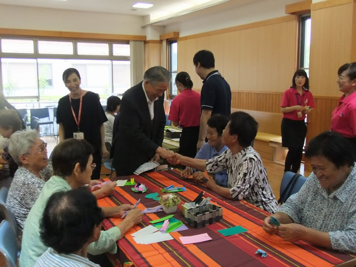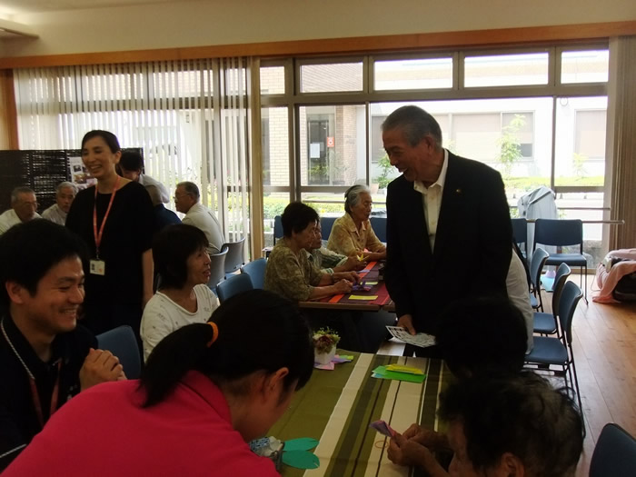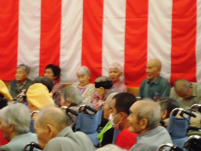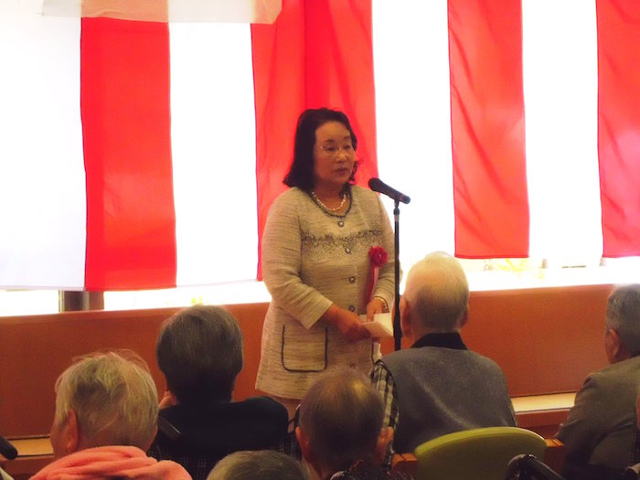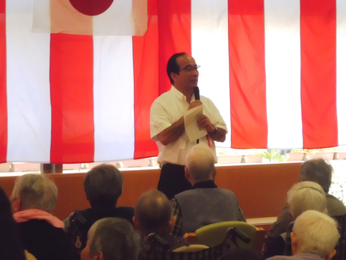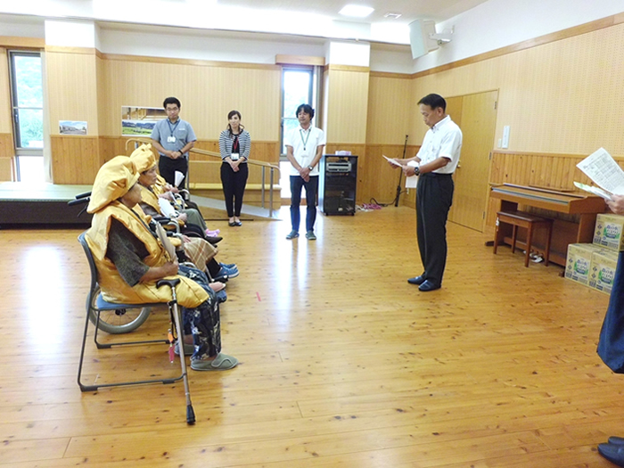 今年は米寿を迎えられた利用者様がいらっしゃり、金のちゃんちゃんこをお召しになり薩摩川内市の担当の方からも祝っていただきました。