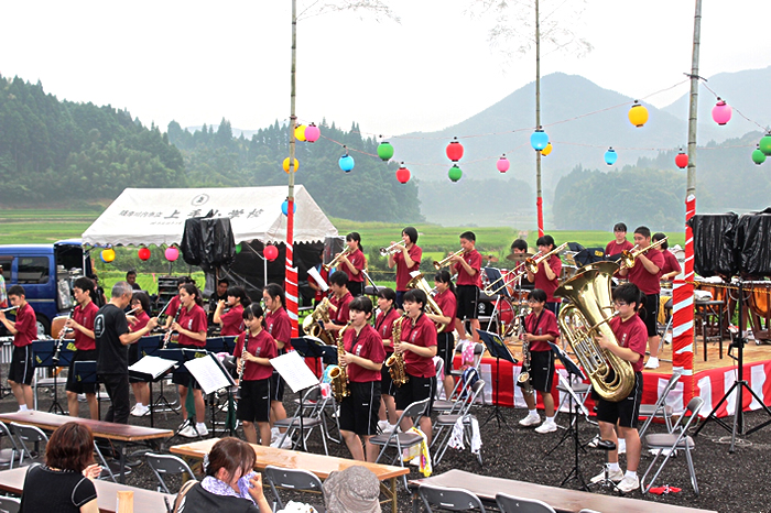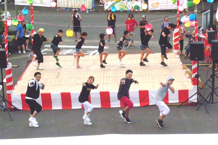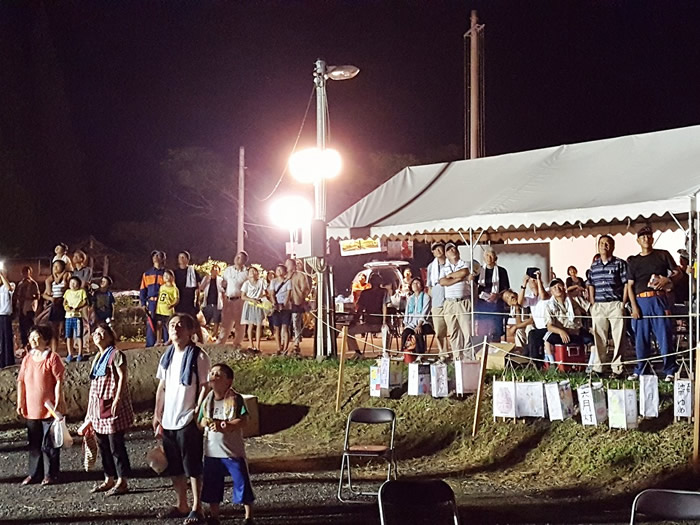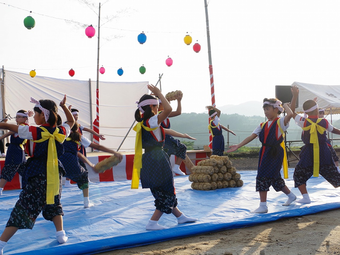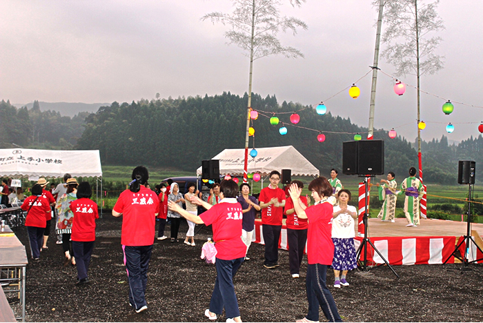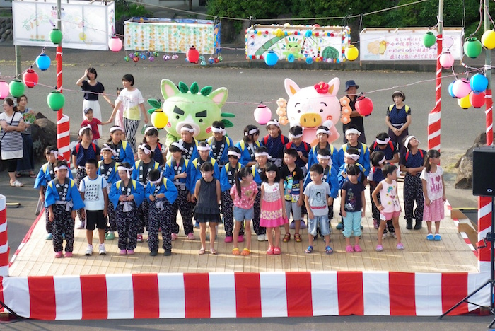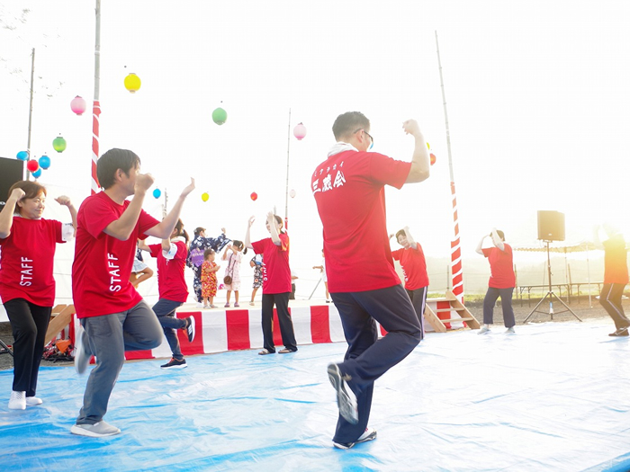 地元の皆様方や小学生たち、踊りの皆様やボランティアの学生等、様々な皆様に後極力いただき盛大に開催することが出来ました。来場者は約500名ほど来られ、地域の方による踊りや地元の小学生による歌など出し物や抽選会など最後まで楽しいひと時となりました。