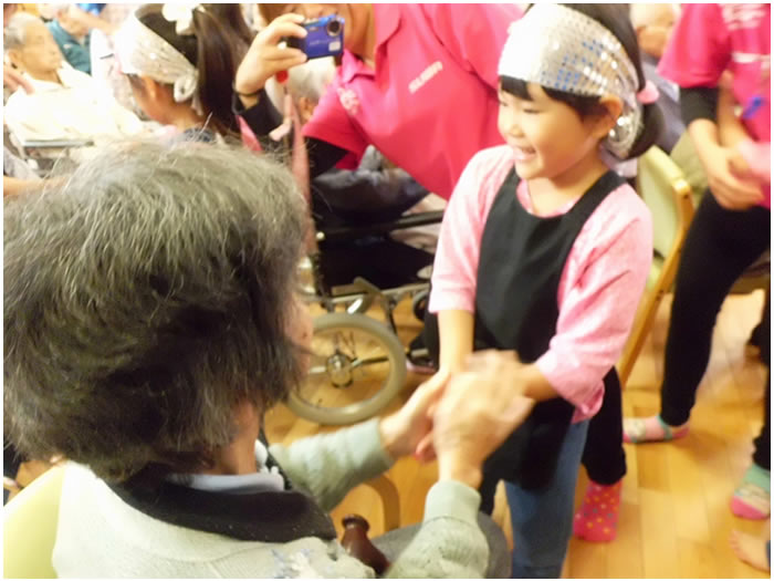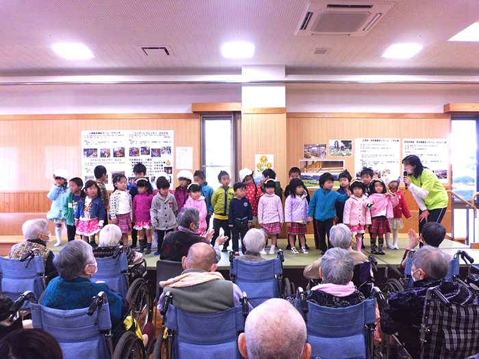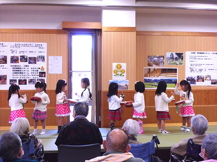 歌や踊りにあわせ、一緒に手を動かされたり、園児の可愛いダンスの後には大きな拍手をされたりと皆様大変楽しまれていました。
