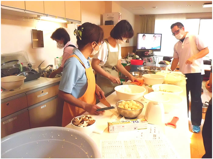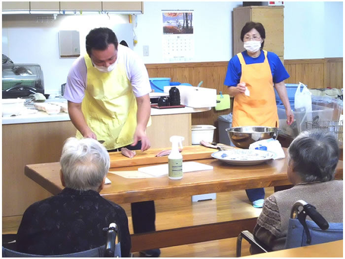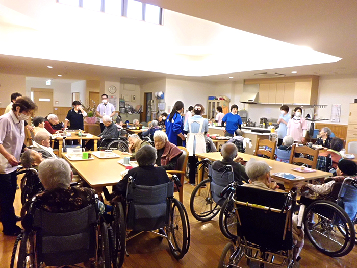 昼食は入居者様と一緒にとっていただき、楽しいひと時を過ごしていただけたと思います。