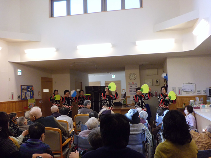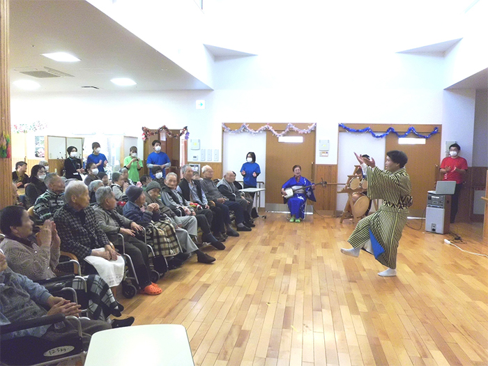 ボランティアの方々にも三味線、歌を披露していただき、踊りあり、笑いありで皆さま大変喜んでいただき幕を閉じる事が出来ました。