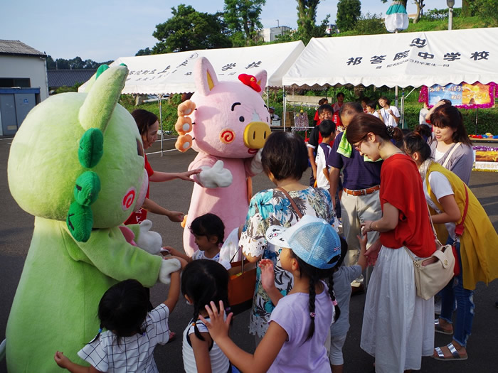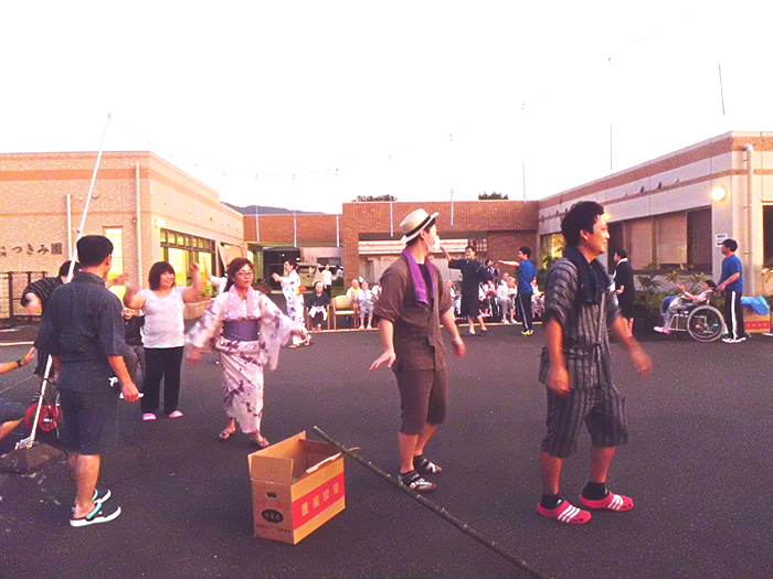 天候に恵まれ今年も上手地区コミと合同で夏祭りを開催しました。上手小学校の児童による合唱や俵踊り、祁答院中学校の吹奏楽部による演奏や地域の方々に参加を頂いたカラオケ大会など大いに盛り上がりました。また、今年は法人設立10周年となるため、初めての試みで夜空に大きな花火を打ち上げました。「かごしまPRキャラクター」のぐりぶー・さくらも遊びに来ていただき、利用者様や地域のみなさまに喜んでいただけたのではないかと思います。ご協力・協賛いただきました個人・企業の皆様に改めてお礼申し上げます。