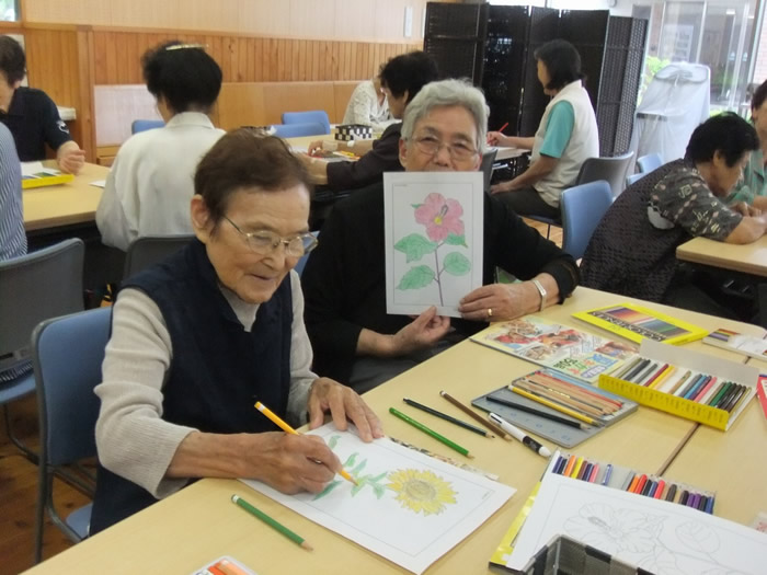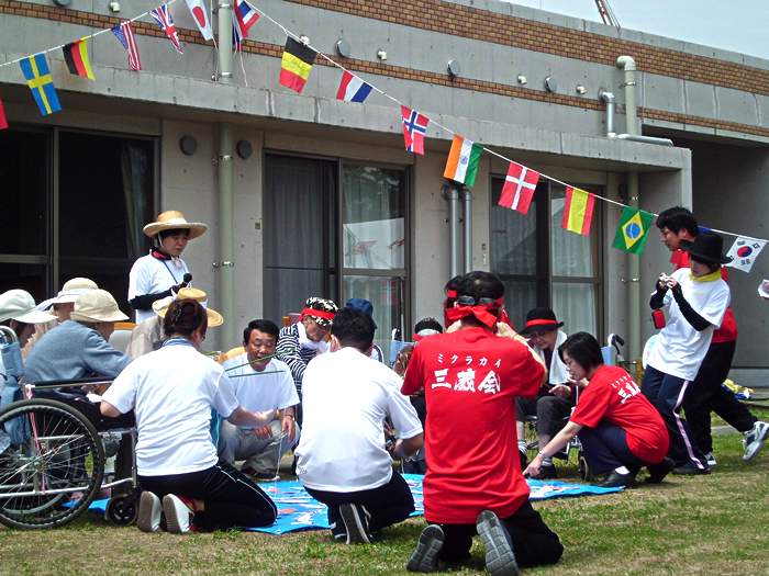 今年3月で、特別養護老人ホームつきみ園が6年目を迎えました。昨年9月には20床の増床があり、特別養護老人ホームつきみ園で50床、特別養護老人ホームおおむら園で29床、合わせて79床の大きな施設となりました。そこで、レクリエーションの一環としまして、みくら学園を始めました。週に一回の活動ですが、ボランティアによる踊りや歌、職員と一緒に創作活動を行ったりと計画しております。利用者様が楽しんでいただけるよう、職員一同一丸となって努めて参ります。