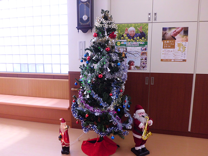 24日はクリスマス会でした。クリスマスツリーの飾りつけや、サンタの格好をした職員よりプレゼントを配布したり、ご家族と一緒にお食事をされた後はクリスマスケーキを食べたりと、楽しい一日を過ごされていました。
