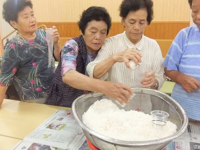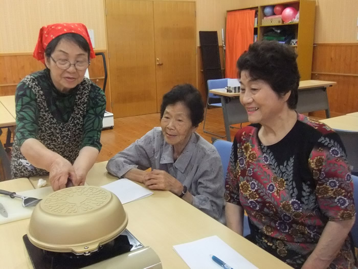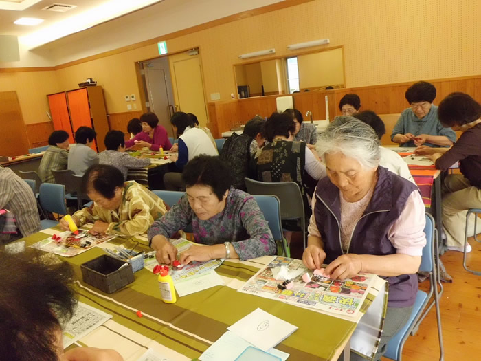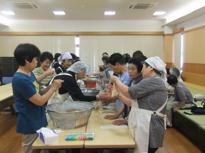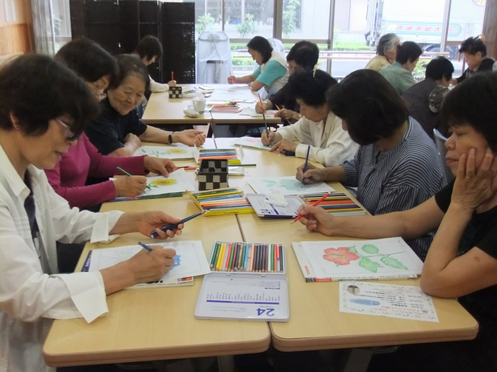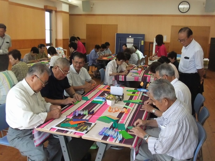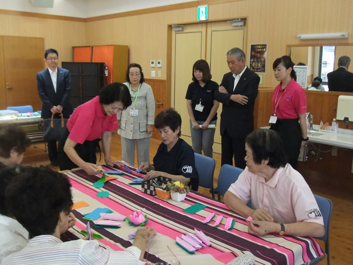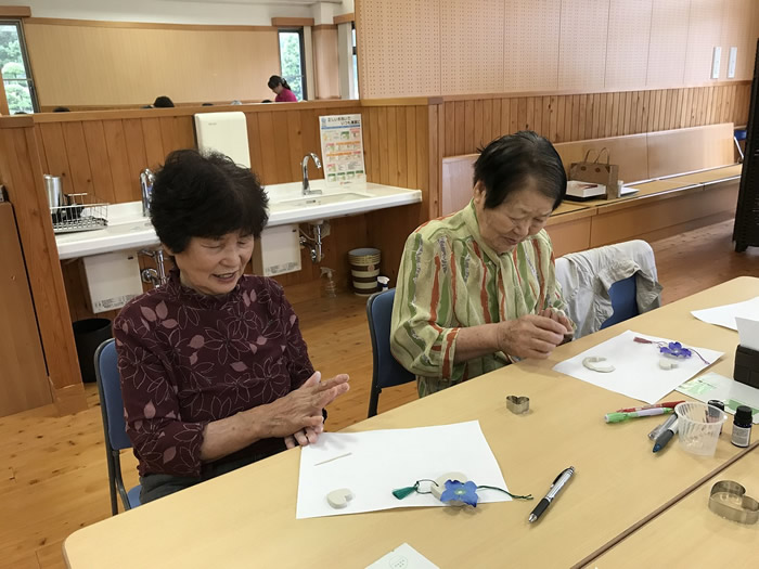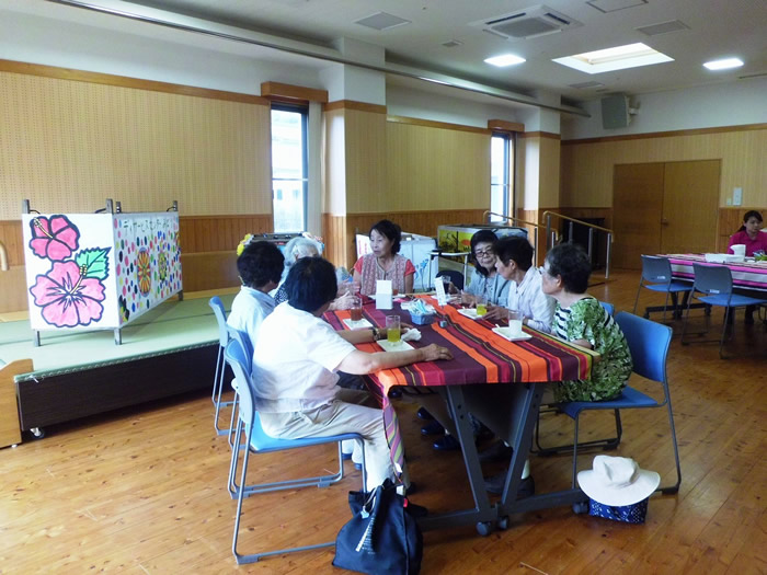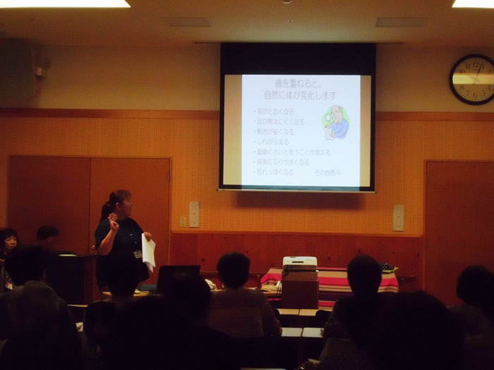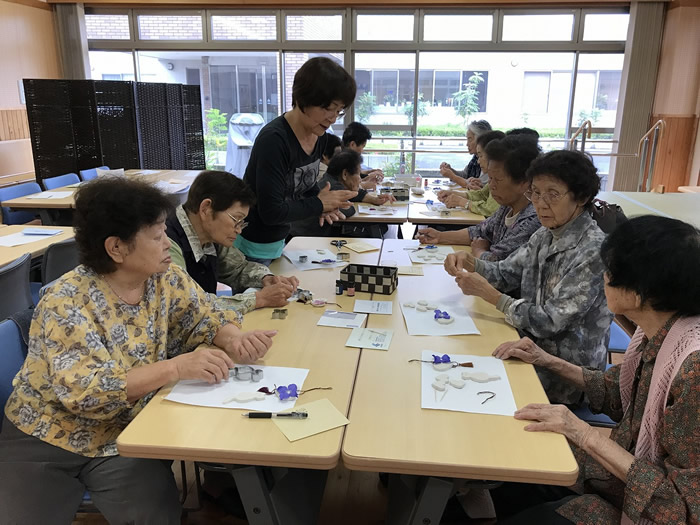 8月3日は夏の小物作りとして、ビーズでブレスレット作りをしました。皆様楽しそうに作られていました。 8月17日は午前中、のぞみ園在宅介護支援センター居宅介護支援事業所の方々にお越しいただき、分かりやすく認知症についてお話しいただき、午後より地域包括支援センターの方による介護相談を行いました。講座では皆様真剣に聞かれており、介護相談ではご家族などの介護についてお話しされていました。