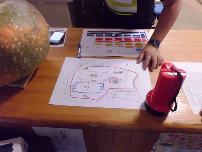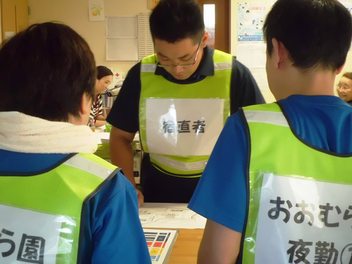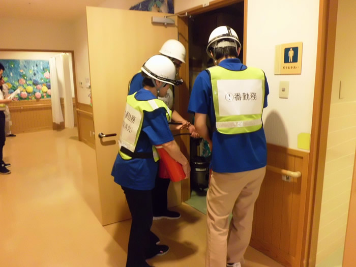利用者様が夜間、お一人で施設からいなくなったという想定で捜索訓練を行いました。実際に職員が行方不明者に扮し、地域の皆様のご協力をいただきながら訓練を行い1時間ほどで無事保護、終了することができました。万が一利用者様が行方不明になられた際には迅速に行動できるよう今後も訓練等を続けてまいります。