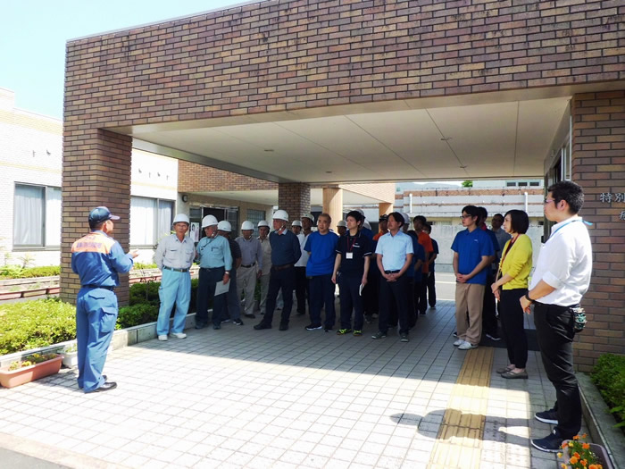 上手地区の皆様のご協力をいただき、消防避難訓練を行いました。今回は昼間におおむら園棟の建物から火災が発生した想定で、利用者の皆様には中庭へ避難していただきました。その後、消防署より練習用の消火器をお借りし、消火訓練を行いました。火災・災害時の備えを今後も続けてまいります。