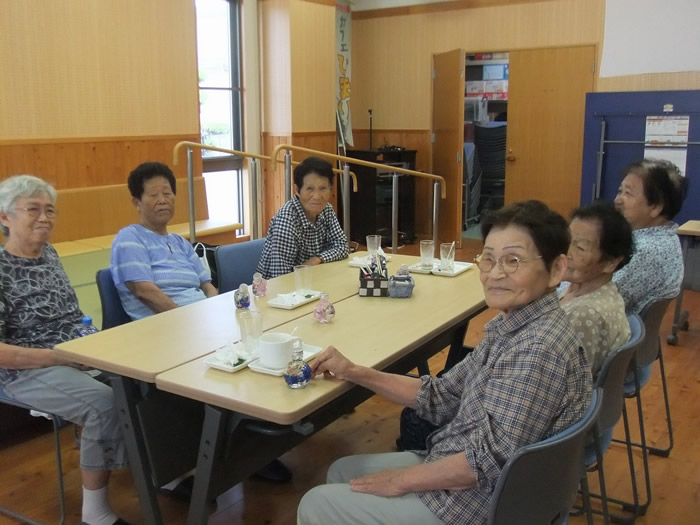 8月より薩摩川内市の委託事業として、再オープンしました。認知症になっても住み慣れた地域で、その人らしい生活を続けることが出来るよう、誰もが気軽に集い、交流することが出来るカフェを目指しております。お茶とお菓子を準備しております。その他、カラオケや体操などのイベントや同法人の介護支援専門員による介護相談所行っております。